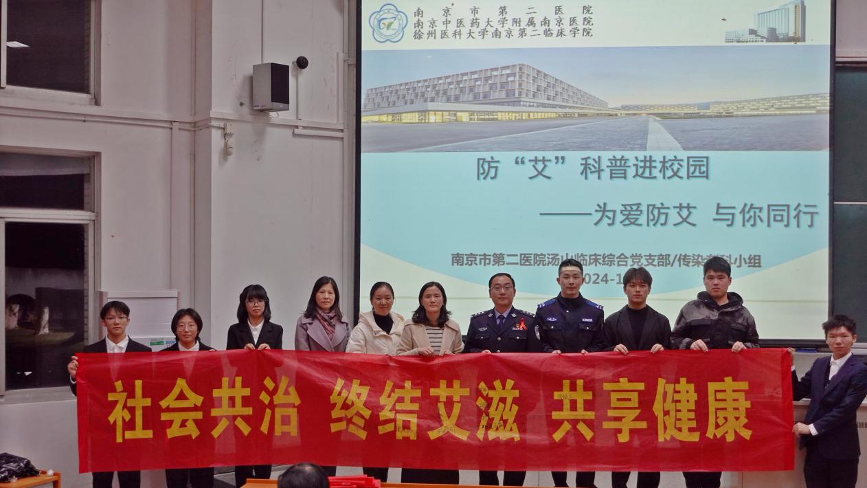 11月29日晚,校团委志愿者工作部邀请了南京市第二医院感染二科护士长张利漫老师和南京市公安局监所管理支队执法勤务大队副大队长刘恺警官在文昌院110开展了“社会共治,终结艾滋,共享健康”防艾知识讲座。全校三百多名师生聆听了讲座。讲座期间,张利漫老师通过生动的案例和详细的数据,讲解了艾滋病相关知识,让同学们认识到艾滋病防治的重要性;刘恺警官将防艾与反诈守法紧密结合,围绕“打击涉艾犯罪,维护社会安宁与现场同学展开了生动有趣的互动问答环节。本次讲座极大增强了广大师生的法治观念,增强防艾意识,为构建平安健康的美好校园奠定了坚实基础。