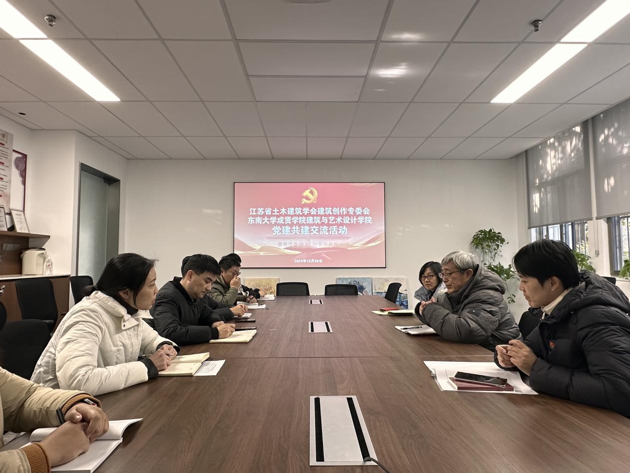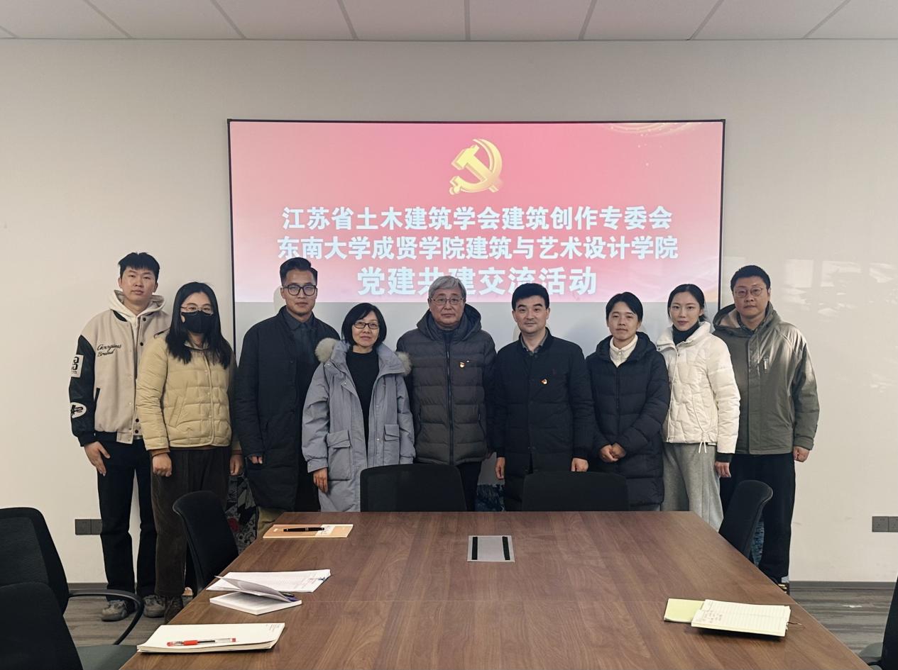 12月30日,江苏省土木建筑学会建筑创作专业委员会党建工作小组组长、副秘书长胡振宇教授一行来国产视频 建筑与艺术设计学院开展党建共建交流活动。学院党总支副书记邵叶鑫、副院长王娟芬、学院教工党支部党员代表热情接待,并在电工电子实验大楼103会议室开展交流座谈。活动由邵叶鑫主持。