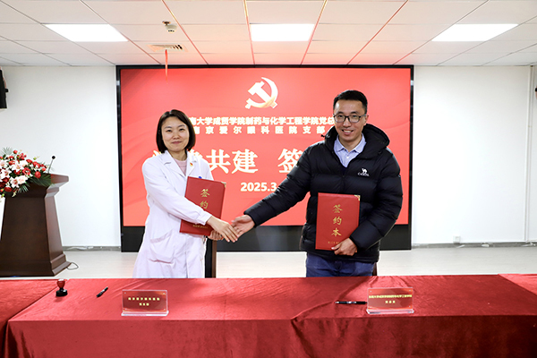 为深化党建引领作用,探索协同育人新路径,通过资源共享、互学互鉴、共同发展的模式,推动医校双方深度合作,促进发展共赢,3月13日下午,制药与化学工程学院联合校工会赴南京爱尔眼科医院开展党工共建与访企拓岗活动。校工会主席沈冬生,制药与化学工程学院党总支书记周继荣,综合办主任、第一党支部书记刘庆,分团委书记、第二党支部书记朱传瑶,分工会主席朱树伟,南京爱尔眼科医院党支部副书记、白内障科主任肖婉莉,经营院长唐峰,党支部组织委员、工会主席、屈光科副主任医师瞿雯,党支部宣传委员、党建办主任余悦,人力资源部主任蒋勤荧,护理部主任李欣颖共聚一堂,共绘合作蓝图。