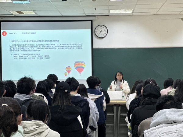 本次活动采用“理论+实践”模式开展。第一个环节为团体心理辅导,同学们围圈开启温馨互动,以“松鼠搬家”游戏迅速活跃气氛。通过积极的讨论与有趣的协作,同学们学习了心理健康相关知识,并切实体会到沟通在心理健康教育中的重要性。随后的理论知识学习环节,段老师通过举例文学经典片段与生活中的实例,生动讲解了心理委员职责、心理健康标准与心理咨询相关要点,希望心理委员积极关注同学心理健康,提供心理支持和帮助。