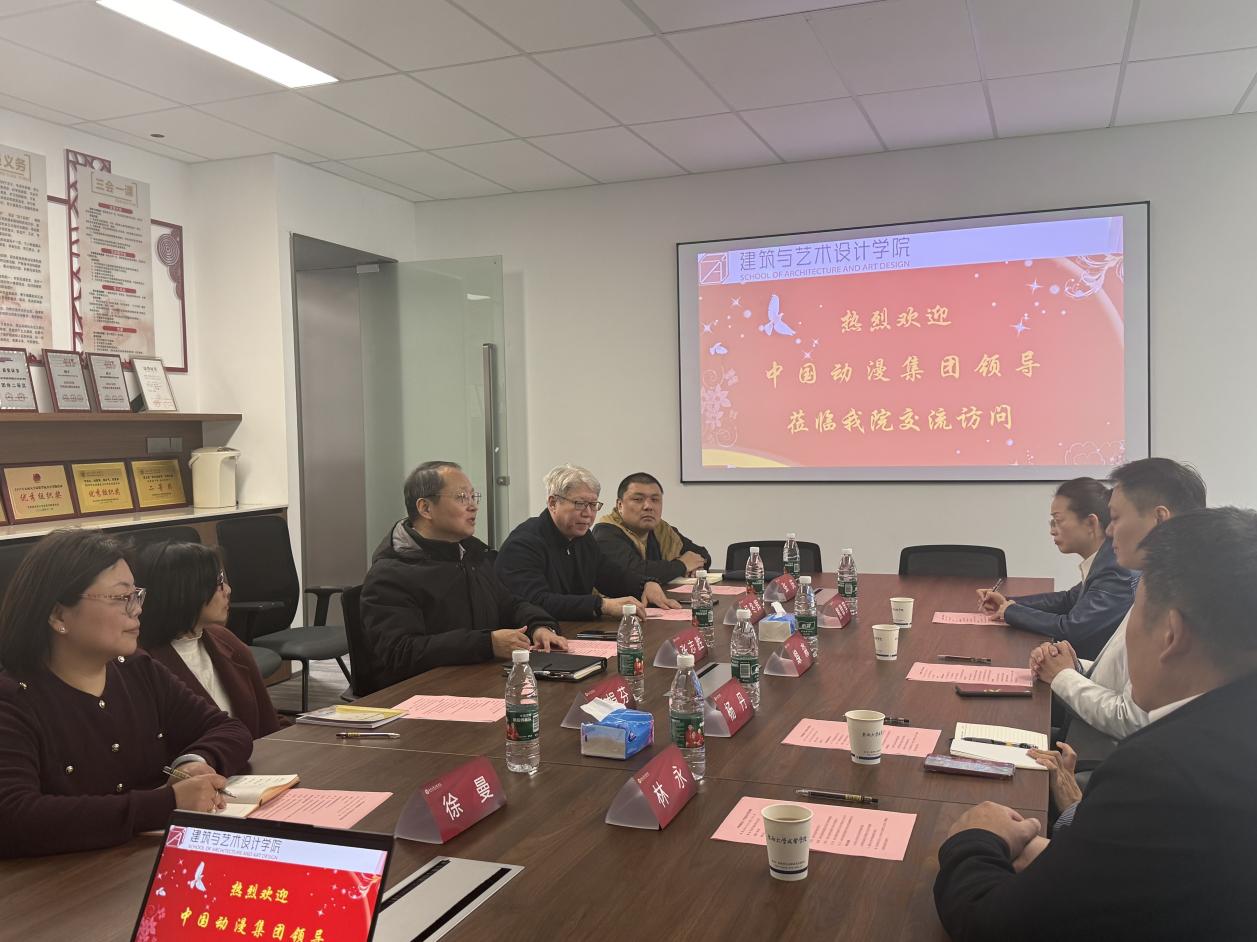 3月21日下午,中国动漫集团培训中心線淼主任、中国动漫发展研究院副院长熊翠萍等一行4人到我院交流访问。国产视频 党委书记张志胜,建筑与艺术设计学院常务副院长杨冬辉、副院长王娟芬等相关老师参加交流座谈。座谈会由杨冬辉常务副院长主持。