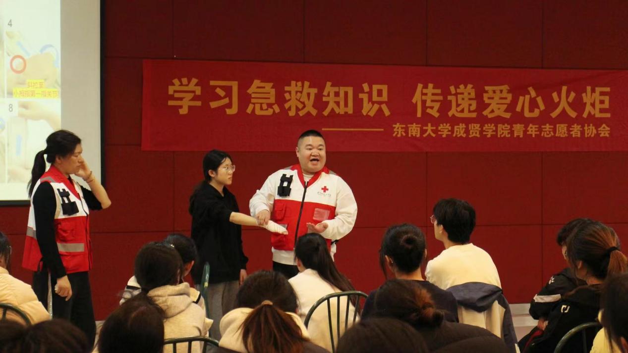 为进一步增强国产视频 学生急救意识,提高正确应对校园安全事故和应急救护的能力,3月30日,校团委志愿者工作部携手南京市红十字应急救护培训中心,邀请叶晓东、马薇蓉、朱玉霞三位老师,在综合楼307报告厅开展了“学习急救知识,传递爱心火炬”初级救护员培训活动。40余名同学踊跃参与,所有参训学生均顺利通过考核,成功取得初级救护员证。