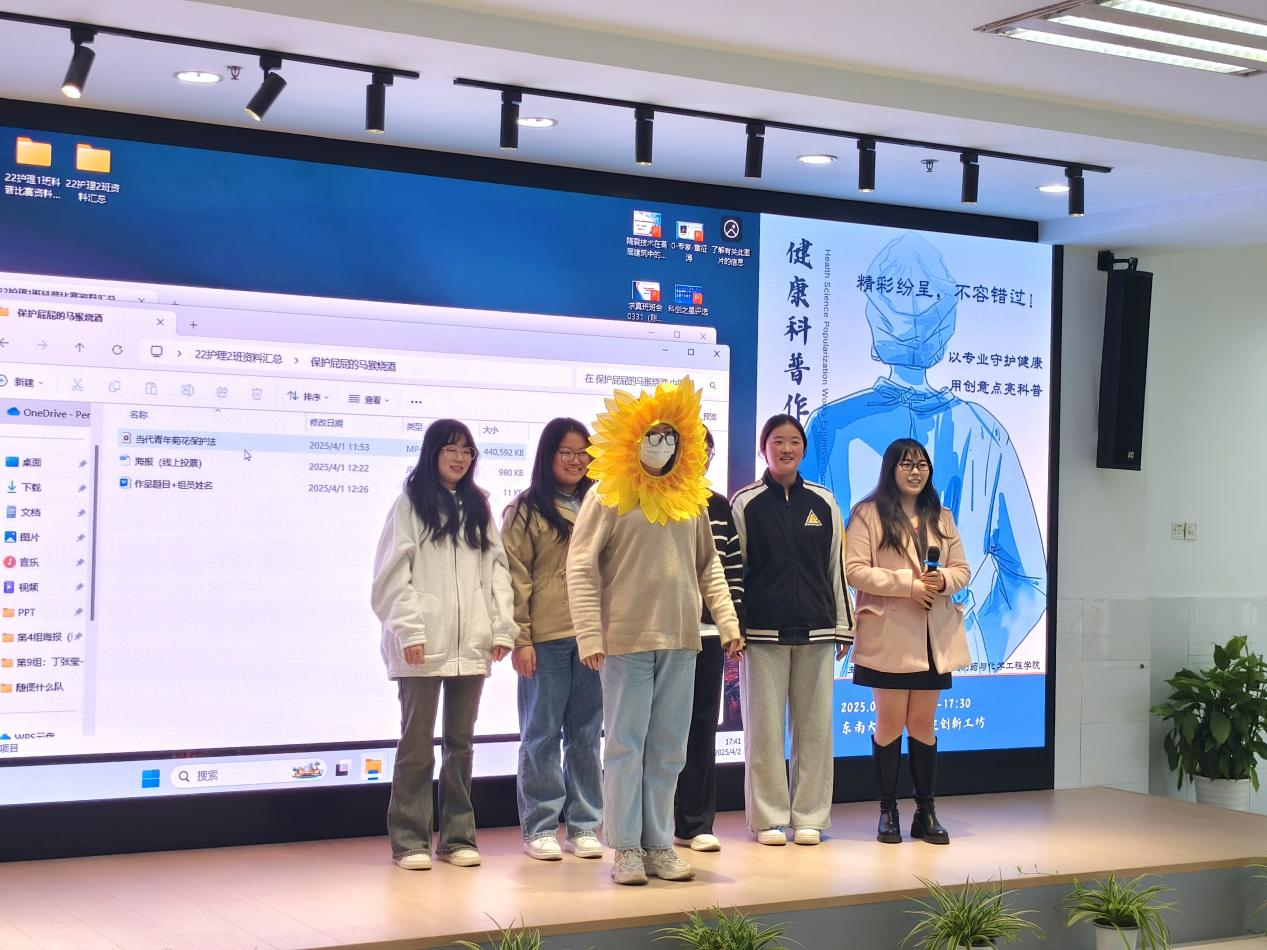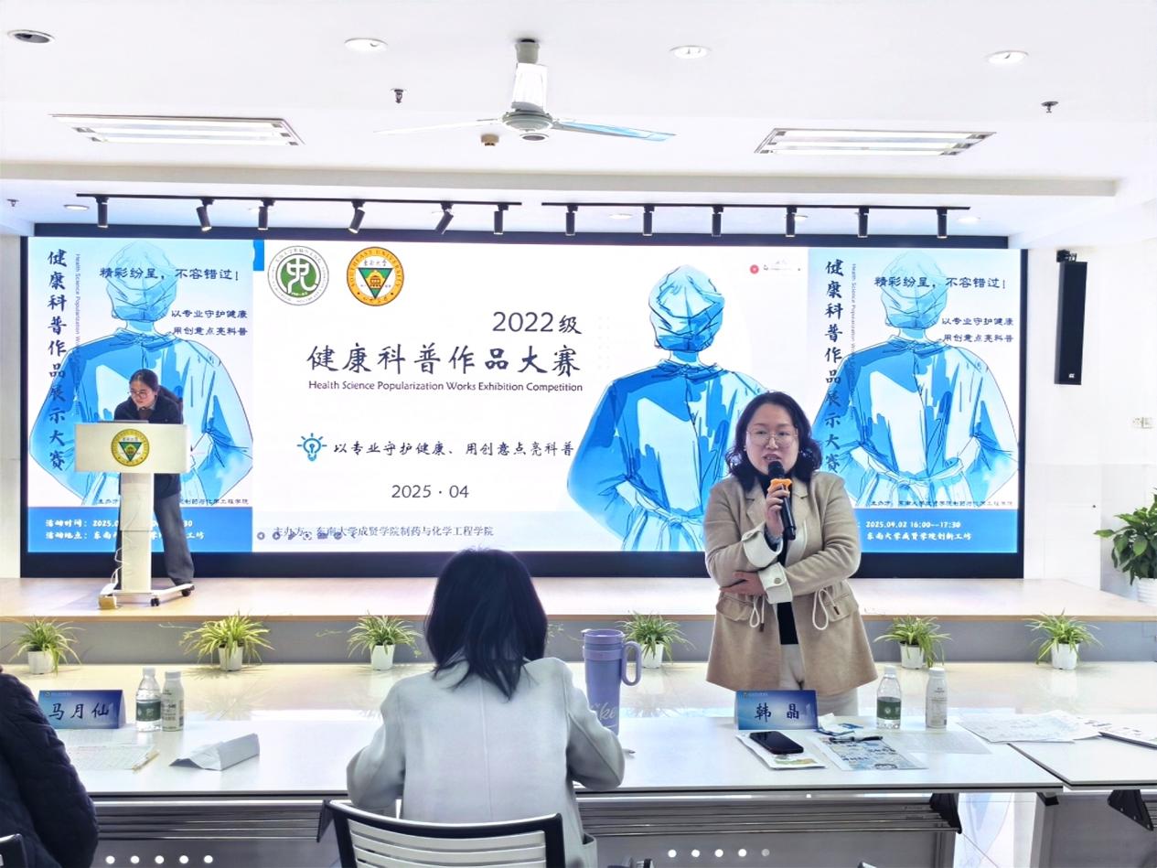 为深入贯彻落实“健康中国2030”规划纲要,深化护理专业教育教学改革,培养具有创新精神和实践能力的高素质护理人才,2025年4月2日,制药与化学工程学院在求真·求美·创新工坊举办2025年健康科普作品展示大赛。本次大赛面向2022级全体护理学生,吸引了11支参赛团队、共计60余名学生积极参与。国产视频 医学院护理学系鲁玲、王艳、韩晶、马月仙、金晓灵五位老师担任评委,2023级护理学生全程观摩并参与现场投票。