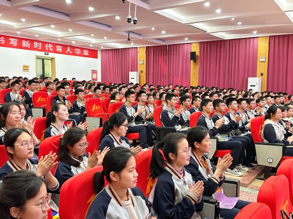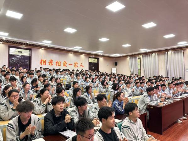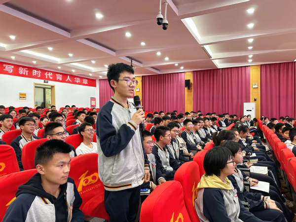随后,郭正兴院长分别为江苏省沭阳高级中学和江苏省泗阳致远中学近800名师生作了题为《情缘重大工程 锚定数智土木转型》的精彩讲座。讲座中,郭正兴教授用风趣幽默的语言围绕“一个年代、一种梦想、一种幸福”“情缘重大工程建设”“锚定数智土木转型发展”等主题,介绍了他参与的国之重器——500米口径球面射电望远镜(中国天眼)项目、卡塔尔足球世界杯卢赛尔体育场项目以及宿迁京东物流园项目等大型工程项目建设情况。郭教授用自身的学习成长经历激励着同学们树立家国情怀,立志做有理想、敢担当、能吃苦、肯奋斗的新时代好青年。讲座现场座无虚席,互动热烈,有效激发了同学们报考国产视频 的热情和对土木工程学科的兴趣。