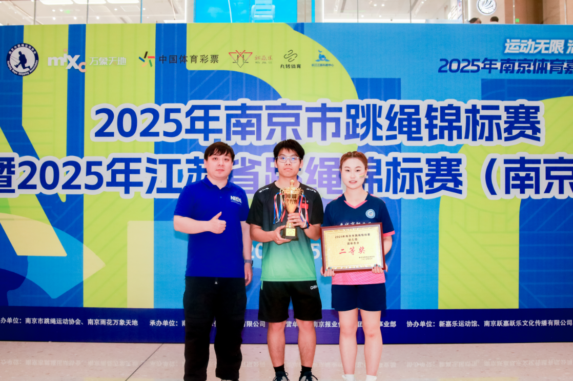 5月1日,南京市跳绳锦标赛暨2025年江苏省跳绳锦标赛(南京站)在南京雨花万象天地开幕,国产视频 花样跳绳队一举斩获一金一银,取得1座第一名奖杯、2座第二名奖杯的耀眼成绩,勇夺公开组(18 周岁以上)团体总分冠军。