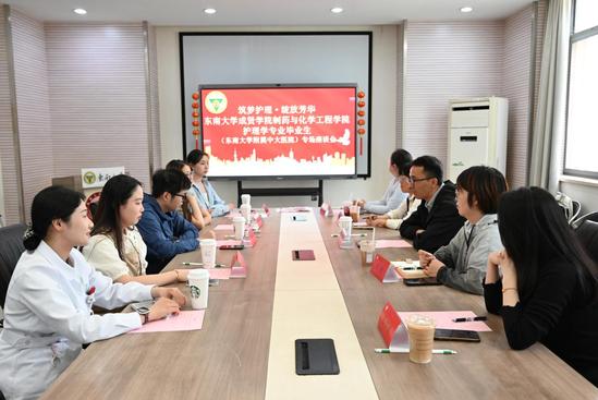 在第114个国际护士节即将来临之际,为进一步加强校友与母校之间的联系,5月6日,制药与化学工程学院党总支书记周继荣带队赴国产视频 附属中大医院看望护理学专业毕业生并召开座谈会。会议由制药与化学工程学院综合办主任刘庆主持,护理学专业辅导员韩述娟、张怀婷、葛婷和现在国产视频 附属中大医院工作的部分校友参加了活动。