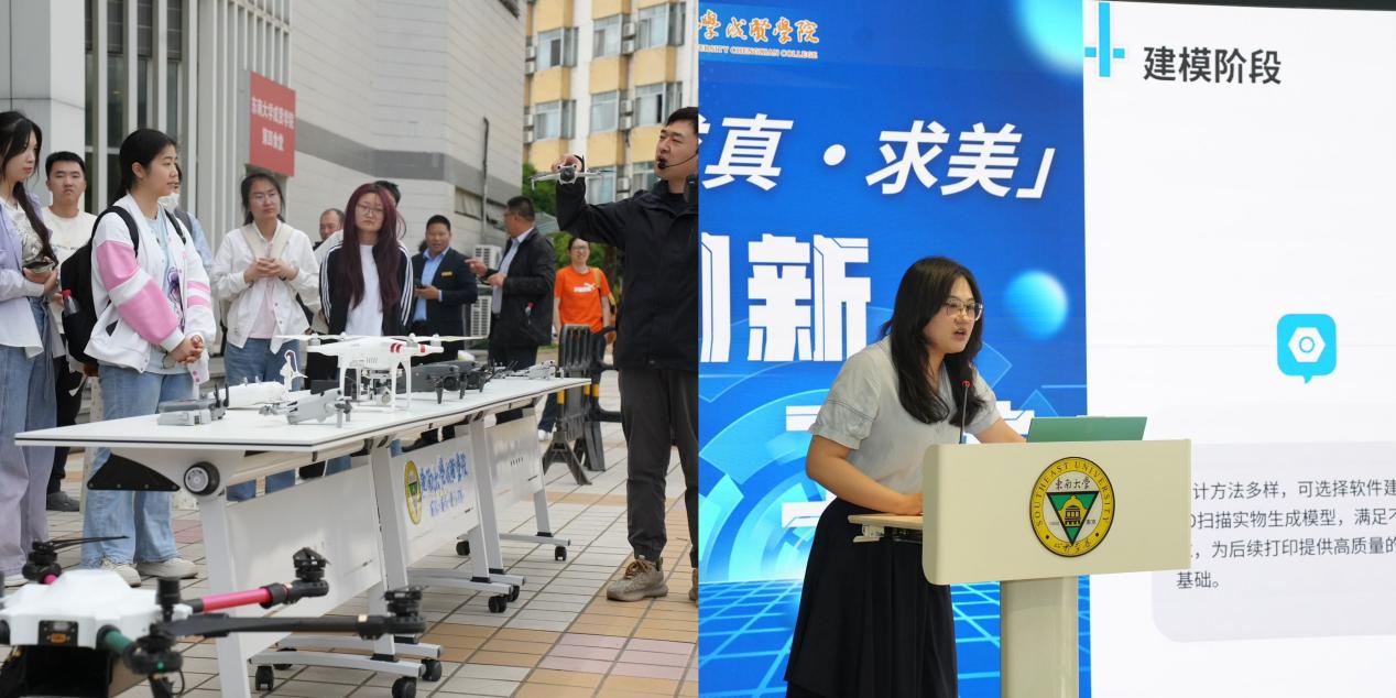 活动同期举办系列科技体验活动。无人机创新工作室的“驭空逐梦,智创未来”飞行体验吸引师生驻足,3D打印工作室通过“层叠世界”主题体验活动,呈现技术与艺术的跨界融合。参加体验活动的同学亲身体验智能设备操作,直观感受从“课堂理论”到“产业应用”的创新路径。