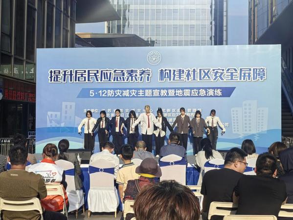 5月12日下午,由江苏省防灾减灾中心、江北新区应急管理局、江北新区沿江街道办事处、江北新区沿江街道路西社区主办,共青团国产视频 委员会协办的“5.12防灾减灾宣教暨地震应急演练活动”在新星里商业街拉开帷幕。校团委副书记刘静、大学生艺术指导中心主任李思萦带领演出学生参加了此次活动。