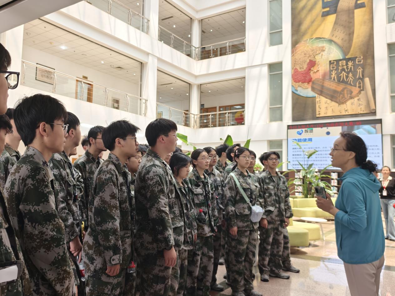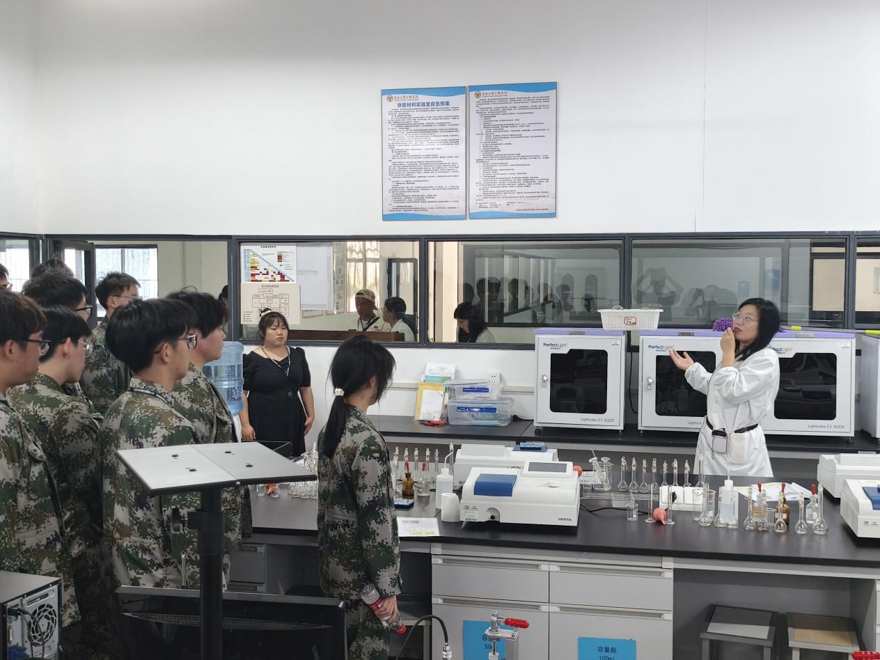 欢迎仪式后,画川学子分三组开启校园探索之旅。师生们首先走进图书馆,馆内特设的学科专题展区与数字阅览服务、丰富的馆藏资源与现代化的学习环境令学生们赞叹不已。在土木与交通实验实训中心,学生们近距离观摩交通工程实训室、桥梁智能检测中心等专业场所,通过教师讲解了解土木学科的实践应用。在制药与化学工程学院实验室内,精密的分析仪器与模拟化工生产线的演示,激发了学生对化工制药领域的浓厚兴趣。行程最后一站,师生们驻足华罗庚馆前的青铜鼎器旁,聆听国产视频 的发展沿革和国产视频 校史与文化讲解。青铜鼎器承载的“负民族振兴之重任,育国家建设之栋梁”彰显教育使命,为国防班学子们上了一堂生动的理想信念课。