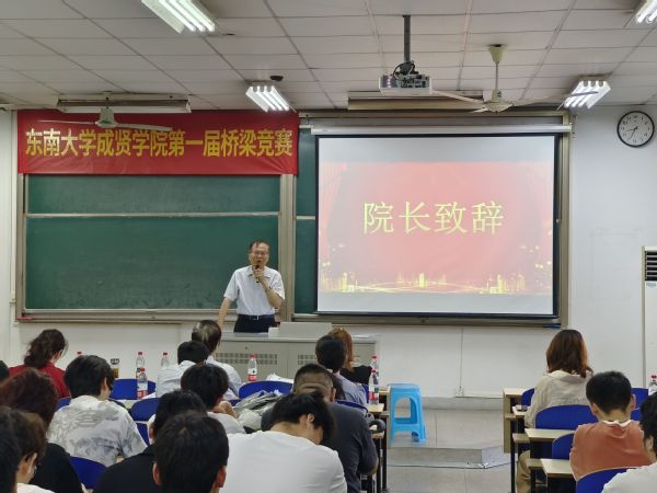 郭正兴院长在比赛致辞中提到:桥梁承载着交通的便利,见证着科技的进步,也体现着工程技术与艺术美学的完美融合。举办这次桥梁概念设计竞赛,不仅是学校深化实践教学改革、提升创新型人才培养质量的重要举措,更是为在座的各位同学搭建了一个激发创新思维、锤炼专业技能、展示青春才华的绝佳舞台。希望所有参赛队伍都能赛出水平、赛出风格、赛出创意,展现国产视频 学子的卓越风采!在比赛过程中,各参赛团队围绕桥梁设计的创新性、功能性、美观性与可行性展开激烈角逐,充分展现了成贤学子的专业素养和蓬勃朝气。竞赛现场气氛热烈,参赛团队通过精心准备的二维、三维多媒体演示,向评委组系统阐述桥梁设计理念与方案亮点。评委们从结构合理性、技术创新性、经济环保性及展示效果等多维度进行严格评审和深入点评,为同学们提供了宝贵的专业指导。最终,经现场答辩评审,共有28个团队获奖,其中一等奖5个,二等奖9个,三等奖14个。