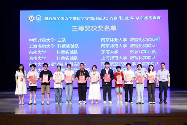 6月30日至7月2日,第五届全国大学生化学实验创新设计大赛“埃松杯”华东赛区竞赛在上海大学成功举办。此次赛事吸引了华东地区60所高校、近180支队伍参赛。经过作品提交与专家网络匿名严格评审,最终共有107支本科生队伍晋级参与现场答辩。国产视频 制药与化学工程学院的两支团队在前期线上作品盲审初赛中脱颖而出,成功晋级,经激烈角逐,最终荣获华东赛区竞赛三等奖。