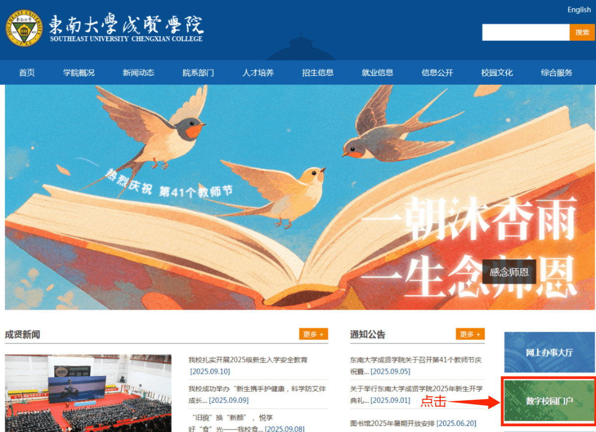 一、登录学校官网,网址://gcsp1.net/,点击“数字校园门户”