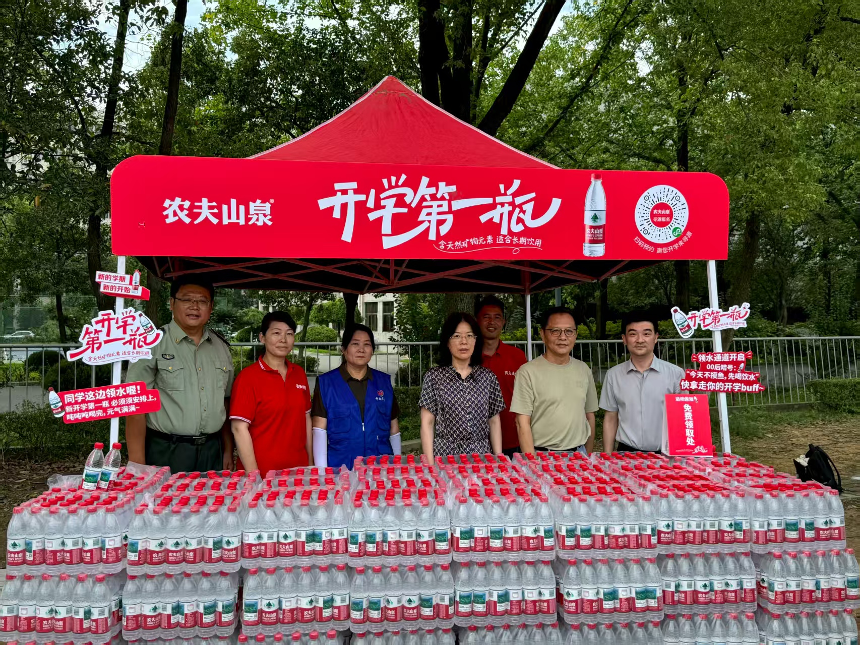 虽已立秋,但军训期间的温度仍然“热情高涨”。后勤管理处心系参训教官和新生,经过前期积极沟通,联合中超超市为广大新生每人赠送了开学第一瓶水。