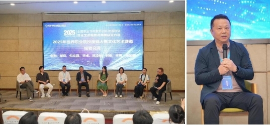 共同体以“人工智能赋能艺术设计教育”为主旨,推动职业教育与企业在教师发展、课程建设、技术研发等方面深度产教融合。建筑与艺术设计学院陈凌航副教授作为2025年度世界职业院校技能大赛总决赛争夺赛艺术设计赛道(高职组)裁判专家代表、共同体理事出席大会,并在圆桌会议环节作为嘉宾发言。陈老师基于自身“双师型”背景,结合多年实践性教改创新体会,对职业技能大赛新变革形势下如何提升职业技能培养作精彩分享。