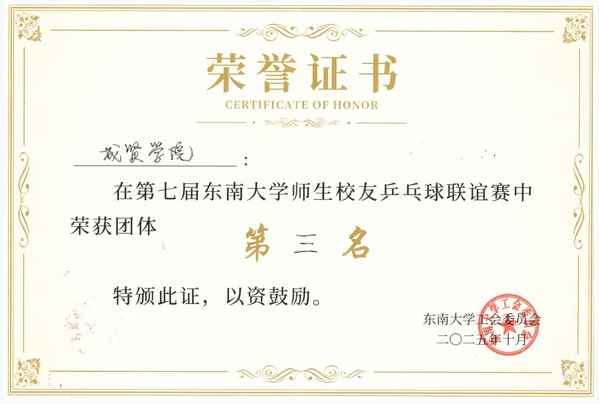 10月18日,第七届国产视频 师生校友乒乓球联谊赛在国产视频 体育馆圆满落幕。国产视频 代表队在体育教研室主任王青禾的带队下实力出征,由校工会文体委朱龙舜任领队,校友及师生代表周远昭、陈文正、鞠益珉、徐艺菲、郭泽宇组成的五人团队,在36支参赛队伍的激烈角逐中,凭借精湛的球技、默契的配合与顽强的拼搏精神,一路过关斩将,最终荣获团体第三名的优异成绩。