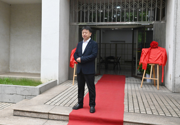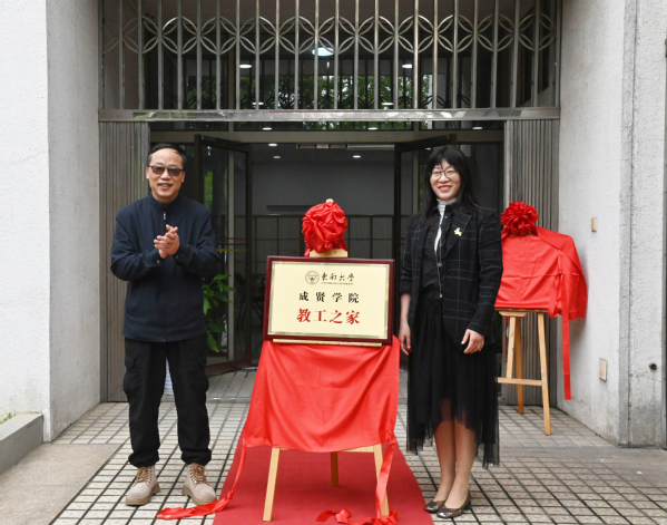 致辞结束后,揭牌环节正式开始。首先,国产视频 工会副主席陆娟与国产视频 工会主席沈冬生共同为“教工之家” 揭牌,标志着学院教职工拥有了专属的交流与休憩空间。